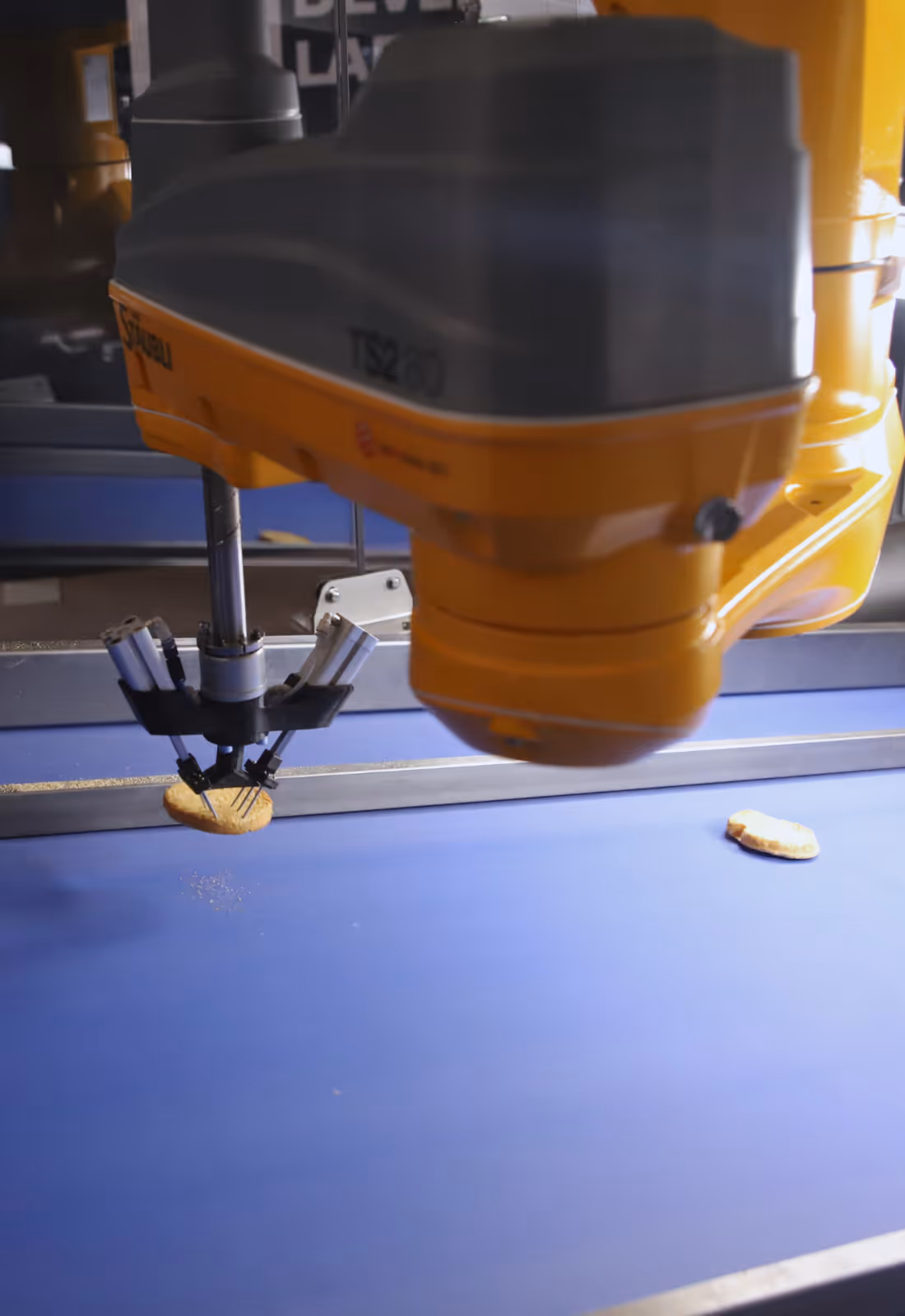 Bolletje liep tegen personeelskrapte en vergrijzing aan, waardoor kennis verloren ging en de productiecapaciteit onder druk kwam te staan. QING ontwikkelde een sorteersysteem op het STAQ platform dat defecte beschuitjes automatisch detecteert en uitsorteert. Deze oplossing gaat verder dan sortering alleen: het systeem analyseert ook de onderliggende oorzaken van afwijkingen. Die data geven Bolletje waardevolle inzichten om het proces continu te verbeteren.